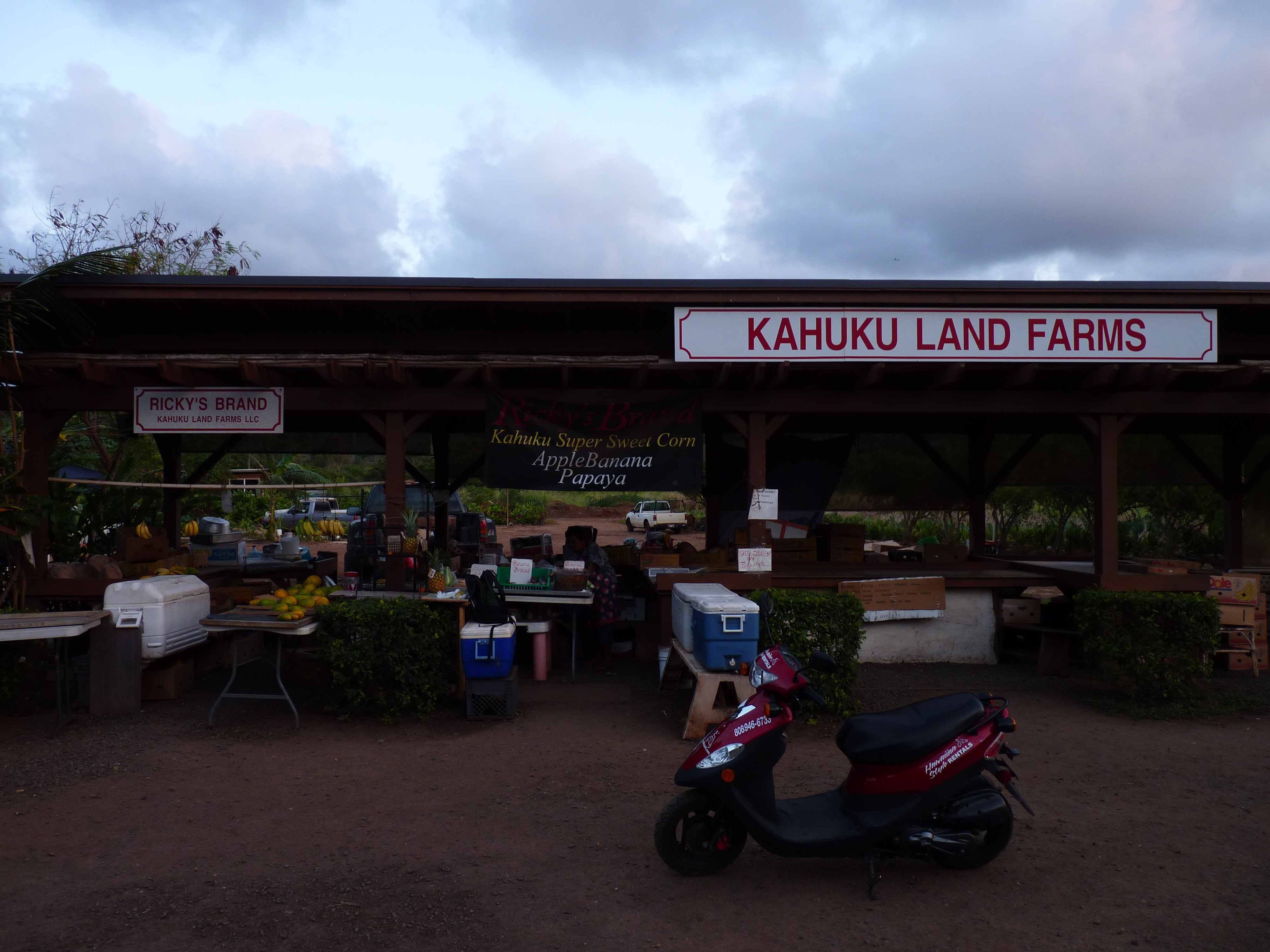 We totally enjoyed seeing the island on our Hawaiian Style scooters. Here we are at the Shrimp Shack.